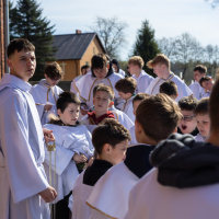 W Niedzielę Męki Pańskiej (29 marca) zwaną popularnie NIEDZIELĄ PALMOWĄ, o godz. 10:50, przeszliśmy procesyjnie, ze śpiewem na ustach, do naszej światyni parafialnej, by celebrować wjazd Jezusa do Jerozolimy.