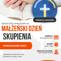 Już dziś zapraszamy na Małżeński Dzień Skupienia, który odbędzie się 25 października, w godzinach od 16.00 do 19.30.