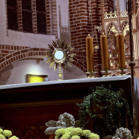 Z radością informujemy, że w przestrzeni sakralnej naszej świątyni pojawiła się nowa, piękna monstrancja, z miejscem na dużą konsekrowaną hostię. Dziękujemy osobie darczyńcy, dzięki której mogliśmy tę monstrancję zakupić.