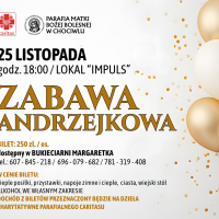Przy okazji serdecznie zapraszamy na tegoroczną ZABAWĘ ANDRZEJKOWĄ, która odbędzie się w sobotę (22 listopada) o godz. 18:00 w IMPULSIE. Bilety (250 zł.) do nabycia w bukieciarni MARGARETKA. Podkreślamy z mocą, że całkowity dochód z balu przeznaczony jest na cele charytatywne CARITAS naszej parafii.