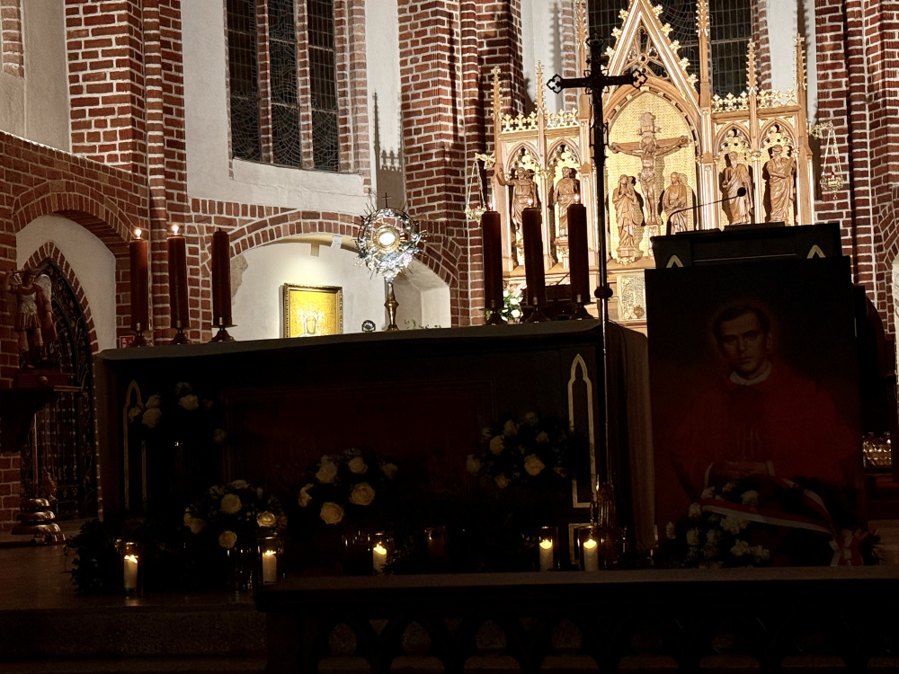 Rozpoczęliśmy nasze czuwanie Mszą Świętą o godz. 18:00. Po Mszy o godz. 18:45, przed Najświętszym Sakramentem, powierzyliśmy Chrystusowi naszą Ojczyznę, jej teraźniejszość i przyszłość, rozważając Słowo Boże oraz cenne słowa ks. Popiełuszki, którego życie i śmierć męczeńska, rozbudzała w sercach tysięcy Polaków – pragnienie wolności w trudnych czasach komunistycznego reżimu. Całość muzycznie uświetniła Schola Agnus Dei, której dziękujemy za piękny śpiew i muzykę.