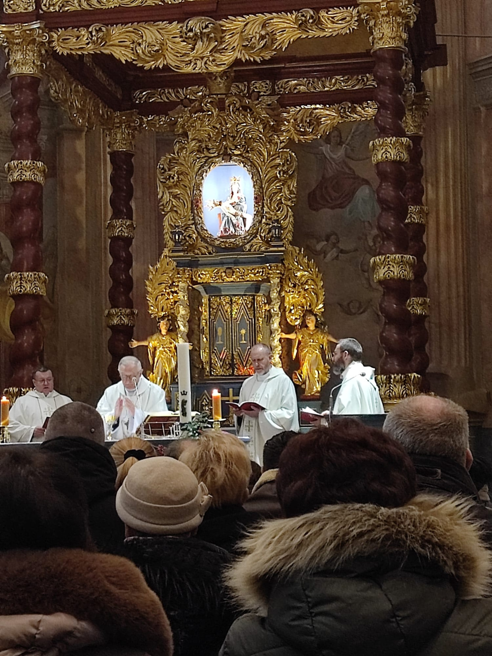 W sobotę (13 grudnia) nasi parafianie wraz z Proboszczem ks. Zbigniewem wzięli udział w jednodniowym DNIU SKUPIENIA - w skrzatuskim Sanktuarium Matki Bożej Bolesnej. Pielgrzymi uczestniczyli w Eucharystii, której przewodniczył bp. Edward Dajczak. Wysłuchali też konferencji "Maryja, kobieta piękna i przynosząca radość", wygłoszonej przez bp. Edwarda. Nie zabrakło osobistej modlitwy przez serce Matki Bożej Bolesnej, obecnej w znaku cudownej Piety, późnogotyckiej rzeźby Matki z Synem.
