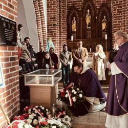 Wśród nich był nasz współbrat, chrystusowiec - ks. mjr Rudolf Marszałek, ps. Piotr, Opoka, kapelan Wojska Polskiego, skazany na karę śmierci i zamordowany przez komunistyczne władze - 10 marca 1948 roku. Eucharystii przewodniczył i Słowo Boże wygłosił ks. Rafał. Po Mszy Świętej wzięliśmy udział w APELU PAMIĘCI oraz wraz z władzami samorządowymi złożyliśmy wieńce i zapaliliśmy znicze, przy pamiątkowej tablicy, poświęconej Niezłomnym.