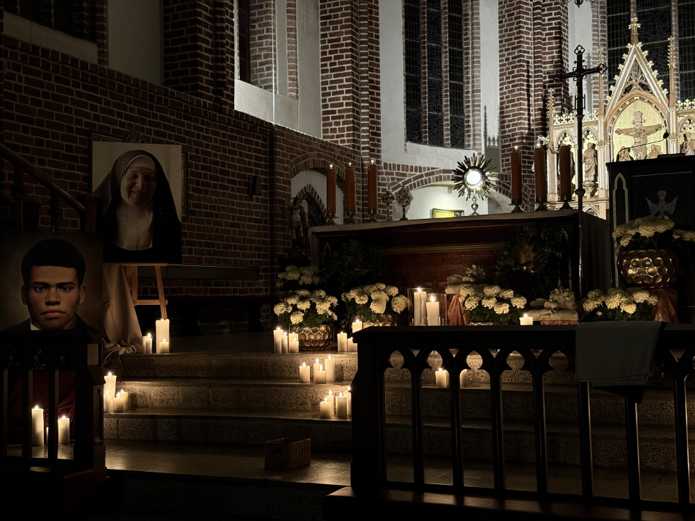 W piątek (31 października) w naszym kościele odbyło się modlitewne czuwanie NOC ŚWIĘTYCH. Wpatrzeni w Najświętszy Sakrament, przy akompaniamencie muzyki i śpiewu, modliliśmy się i powierzyliśmy Bogu nasze sprawy, bliskich… przez wstawiennictwo św. Elżbiety Róży Czackiej, św. Petera To Rota, bł. José Luisa Sánchez del Río, bł. Hanny Chrzanowskiej i Sługi Bożego ks. Pawła Kontnego SChr.