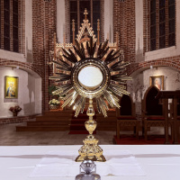 Z radością informujemy, że w przestrzeni sakralnej naszej świątyni pojawiła się nowa, piękna monstrancja,  z miejscem na dużą konsekrowaną hostię. Dziękujemy osobie darczyńcy, dzięki której mogliśmy tę monstrancję zakupić.