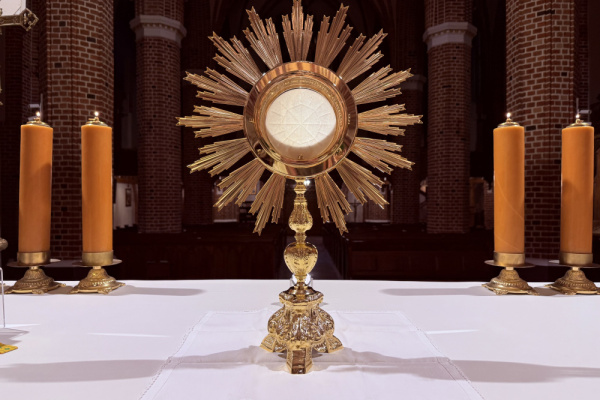 Monstrancja to ozdobne naczynie liturgiczne, które służy do wystawienia Najświętszego Sakramentu na widok wiernych. Jej nazwa pochodzi od łacińskiego słowa „monstrare”, oznaczającego „pokazywać” lub „wystawiać”. Centralnym elementem monstrancji jest okrągłe miejsce przeznaczone na umieszczenie hostii konsekrowanej. Z reguły jest otoczone promieniami, które symbolizują światło i chwałę Chrystusa. Najczęściej monstrancje są używane podczas adoracji eucharystycznej, procesji Bożego Ciała oraz innych uroczystości kościelnych. To niezwykłe naczynia liturgiczne podkreślające godność i świętość Najświętszego Sakramentu. Monstrancje mają zwykle kształt przypominający słońce. Co ważne, wyróżniają się bogatą symboliką. Promienie wychodzące z centralnej części naczynia oznaczają światłość Chrystusa, która oświeca wiernych. Niektóre monstrancje są zdobione dodatkowymi elementami, takimi jak motywy maryjne, postacie świętych czy symbole eucharystyczne, np. kielich czy winorośl.