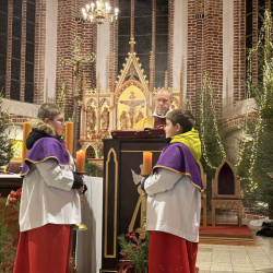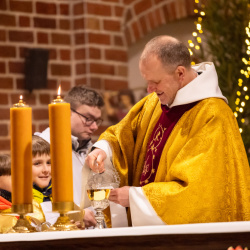 W wigilię uroczystości Narodzenia Pańskiego, w naszym parafialnym kościele, celebrowaliśmy dwie Msze Święte pasterskie o godz. 22:00 i 24:00. Obydwu Eucharystiom przewodził Proboszcz ks. Zbigniew. Również na filiach odprawione zostały uroczyste Pasterki.