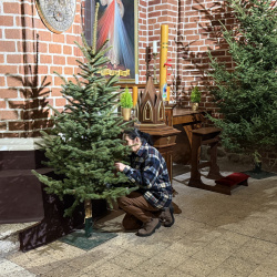 Święta coraz bliżej... w naszej świątyni zrobiło się zielono. Dziękujemy z serca wszystkim paniom i panom, zaangażowanym (w piątkowy wieczór) w ustawianie choinek i prace techniczne...