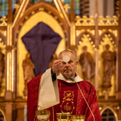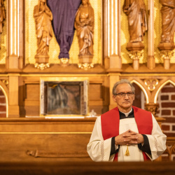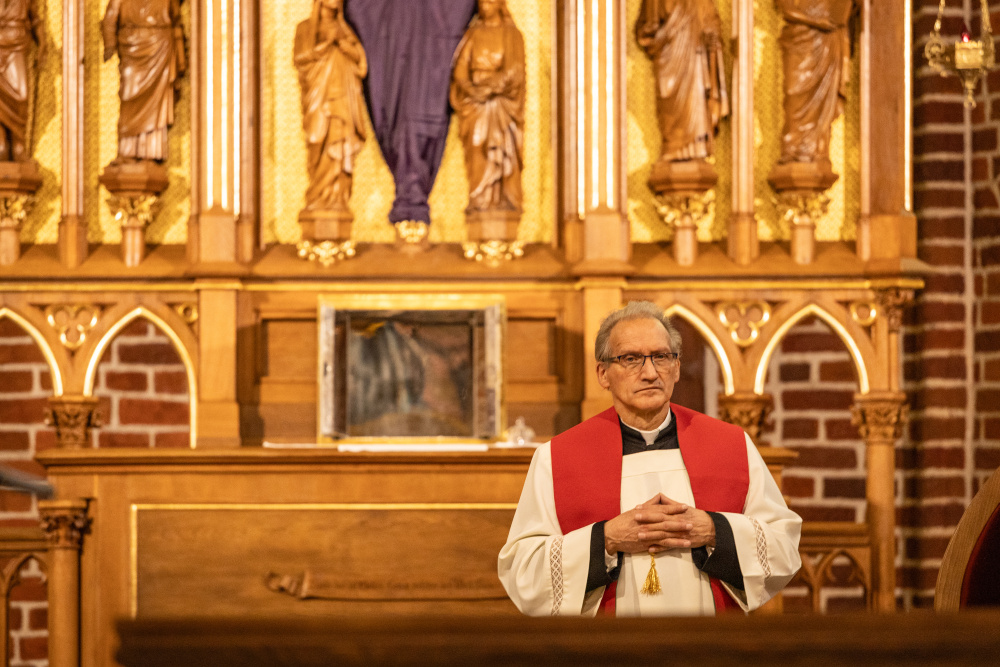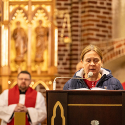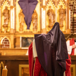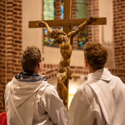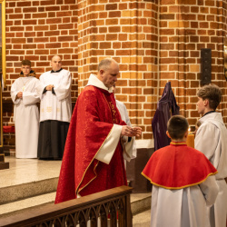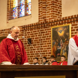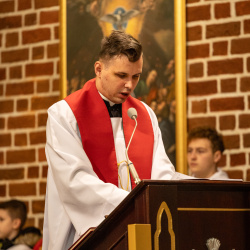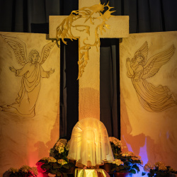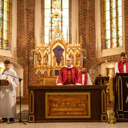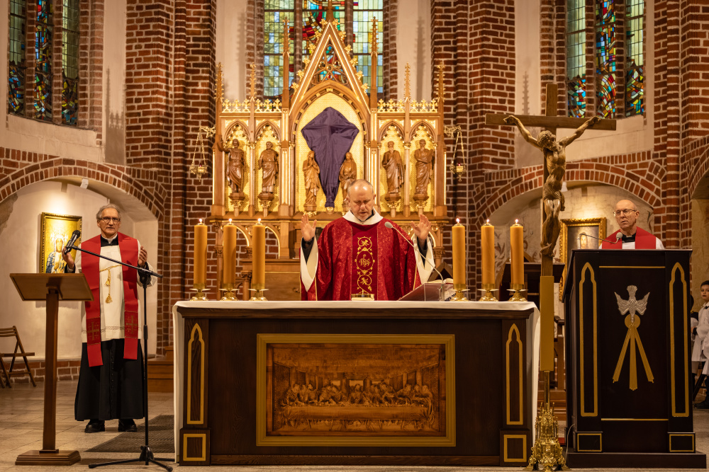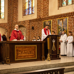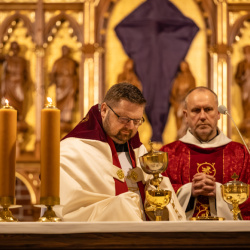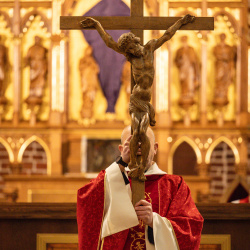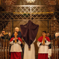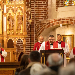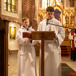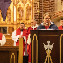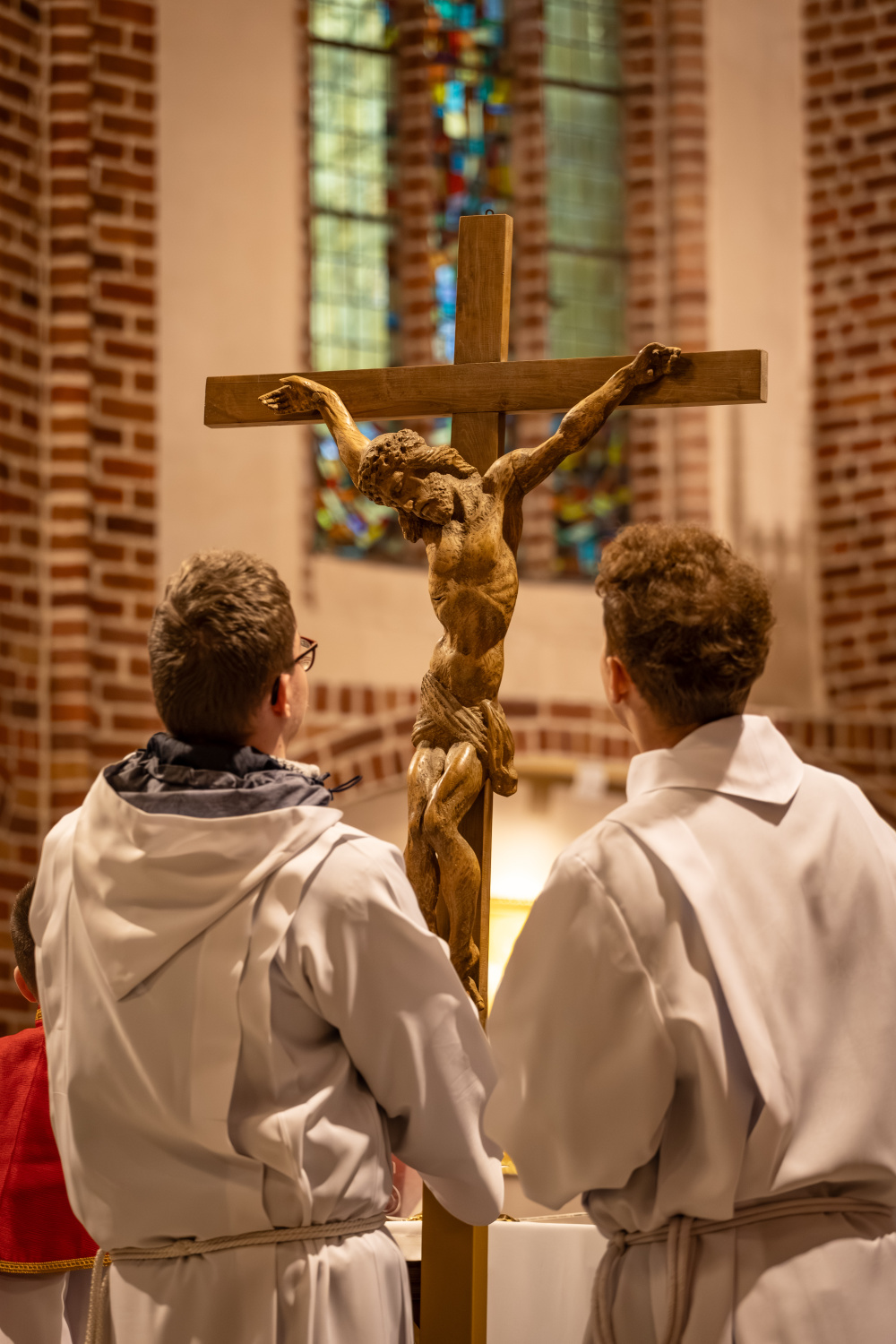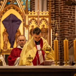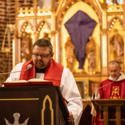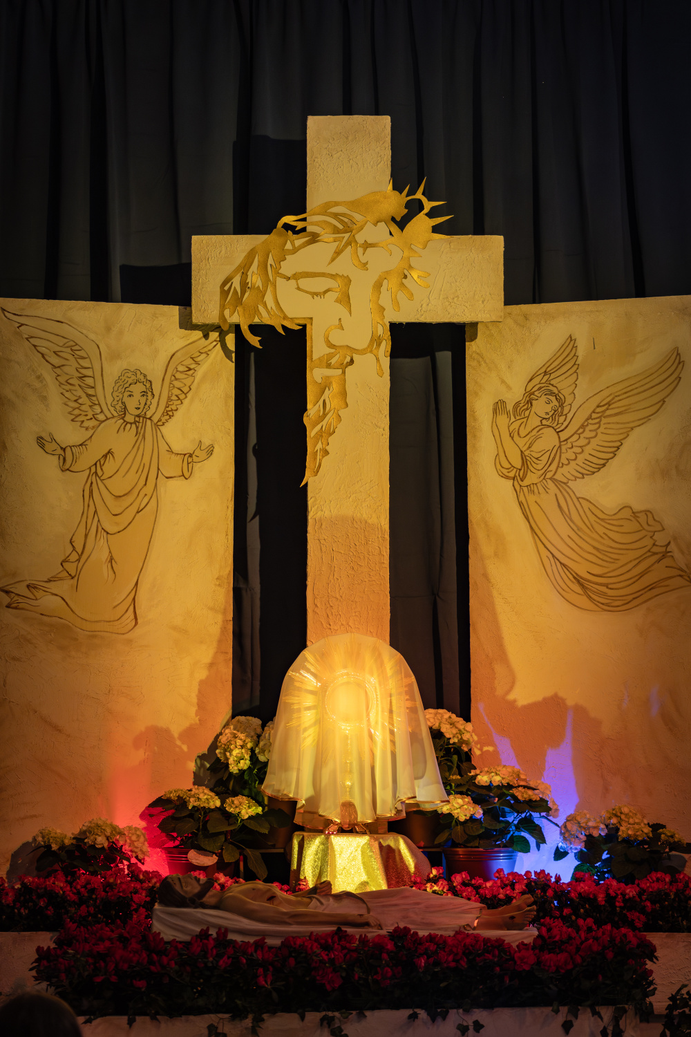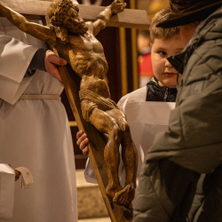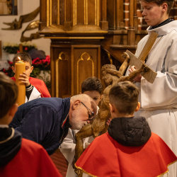 Wielki Piątek (3 kwietnia) był dniem postu i modlitwy. Przez cały dzień nasi parafianie gromadzili się na modlitwę przy ciemnicy, aby w ciszy odkrywać swoje serce przed Bogiem. Wiele osób przystąpiło do Sakramentu Pokuty i Pojednania. O godz. 09:00 i 15:00 odbyły się nabożeństwa Drogi Krzyżowej. Liturgia Męki Pańskiej, której przewodniczył Proboszcz ks. Zbigniew, rozpoczęła się pod wieczór, o godz. 18:00.